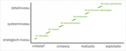 De keuze voor een detailniveau in een bepaalde fase is natuurlijk niet in beton gegoten. Je maakt per project of variant de afweging. Abstract of gedetailleerd.